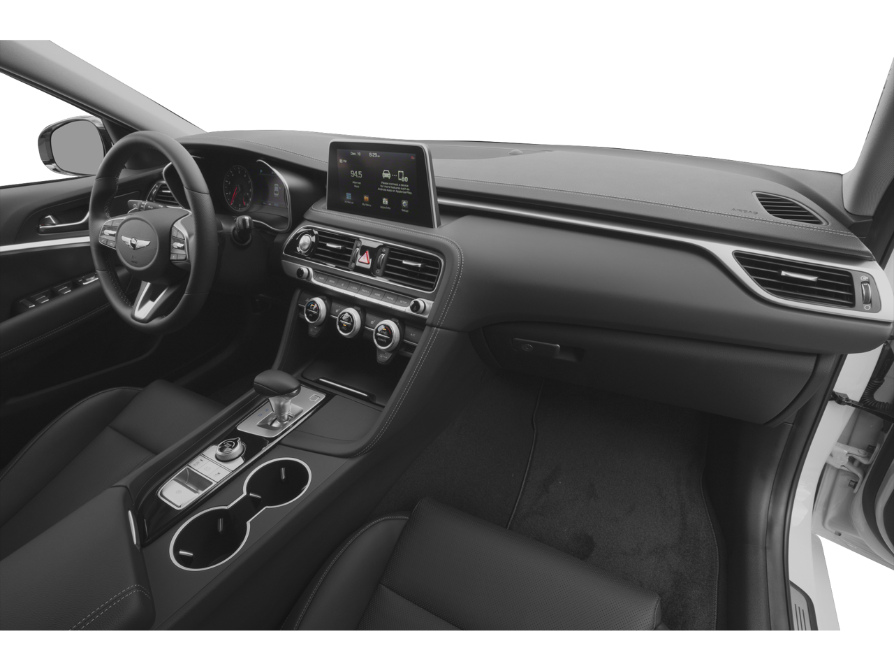 - Radio: AM/FM/SiriusXM/HD Audio System -inc: 6 channel internal amplifier, 6 speakers including subwoofer, 8" touchscreen display, front 12V power outlet, steering wheel controls, Android Auto, Apple CarPlay, 2 front USB ports, auxiliary input jack, Bluetooth® hands-free phone system and Genesis Connected Services