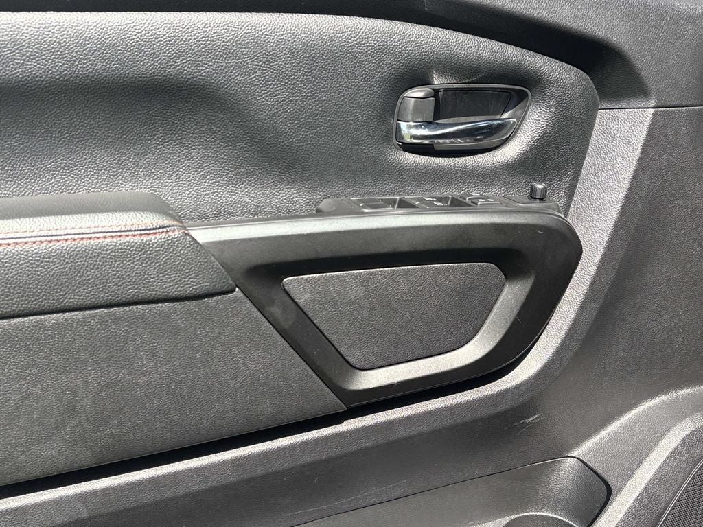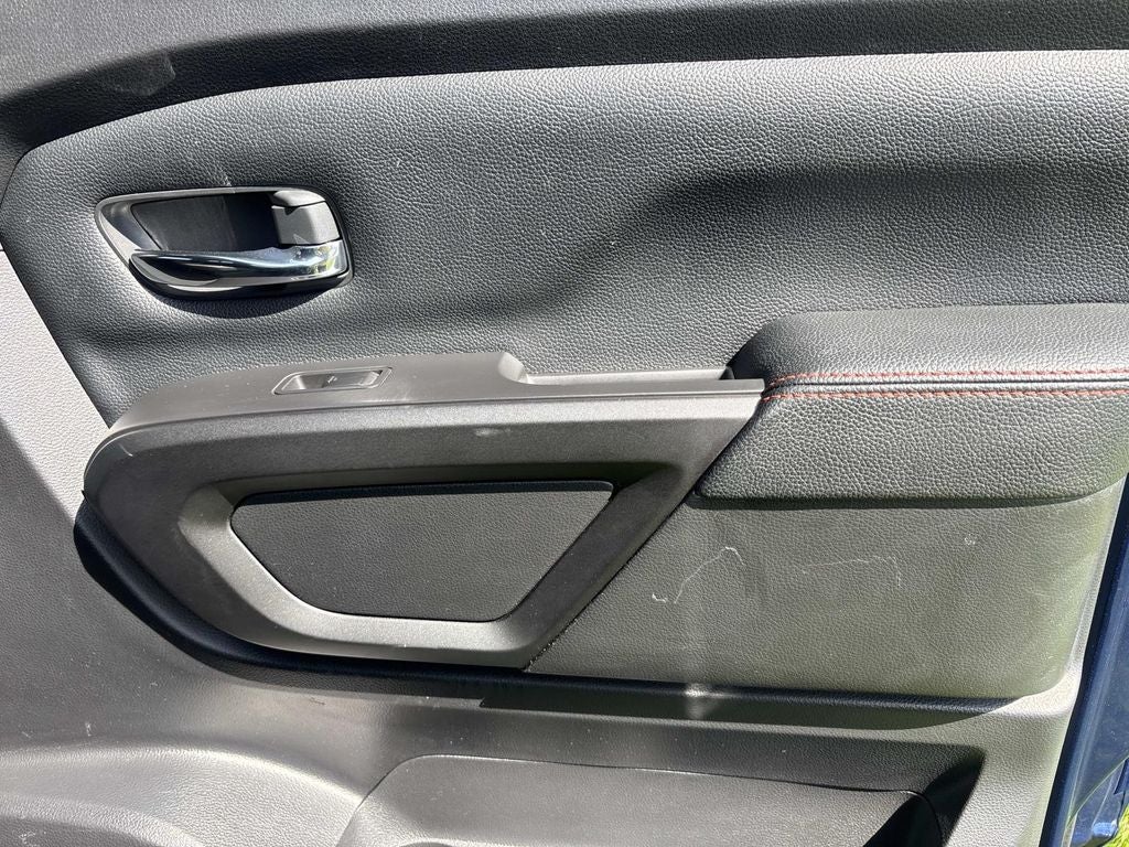 Inside, the Titan PRO-4X offers a premium driving experience. The Fender Premium Audio System with 12 speakers delivers a concert-quality sound, while the power driver's seat and leather-wrapped steering wheel ensure a comfortable and commanding ride. The Proximity Activation and Power Sliding Rear Window add to the truck's modern conveniences.