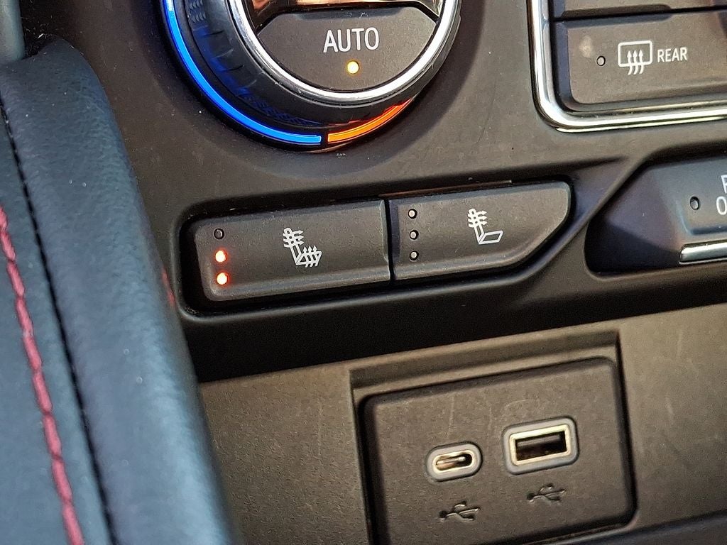 THIS VEHICLE INCLUDES THE FOLLOWING FEATURES AND OPTIONS: Driver Alert Package (Lane Change Alert w/Side Blind Zone Alert and Rear Cross Traffic Alert), License Plate Front Mounting Package, Luxury Package (2nd Row Pwr Release 60/40 Split-Folding Bench Seat, 3rd Row 60/40 Power-Folding Split-Bench Seat, HD Surround Vision, Heated 2nd Row Outboard Seats, Heated Steering Wheel, Memory Settings, Outside Heated Power-Adjustable Mirrors, Power Tilt & Telescopic Steering Column, and Rear Pedestrian Alert), Preferred Equipment Group 1SP (1st & 2nd Row Color-Keyed Carpeted Floor Mats, Auto-Dimming Inside Rear-View Mirror, Automatic Stop/Start, Bose 9-Speaker Stereo Audio System Feature, Bright Front & Rear Door Sill Plates, Color-Keyed Carpeting Floor Covering, Driver & Front Outboard Passenger Airbags, Enhanced Driver Information Center, Floor Console w/Storage Area, Hands-Free Rear Power Programmable Liftgate, Infotainment Display, Leather-Wrapped Steering Wheel, LED Daytime Running Lamps, Memory Settings for Driver, Remote Start, SiriusXM Radio w/360L, Start/Stop System Disable Button, Universal Home Remote, and Wireless Charging), Sport Performance Package (Dual Exhaust System and Magnetic Ride Control Suspension), 4WD, Jet Black/Victory Red Leather, 10-Way Power Driver & Passenger Seat Adjusters, 3.23 Rear Axle Ratio, 3rd row seats: split-bench, 4-Wheel Disc Brakes, 6-Piston Front Brembo Brake Upgrade (LPO), 9 Speakers, ABS brakes, Air Conditioning, All-Weather Cargo Mat (LPO), Alloy wheels, AM/FM radio: SiriusXM with 360L, Apple CarPlay/Android Auto, Auto High-beam Headlights, Auto-dimming Rear-View mirror, Automatic temperature control, Black Roof Rack Cross Rails, Brake assist, Bumpers: body-color, Compass, Delay-off headlights, Driver door bin, Driver vanity mirror, Dual front impact airbags, Dual front side impact airbags, Dual-Pane Power Panoramic Sunroof, Electronic Stability Control, Emergency communication system: OnStar and Chevrolet connected services capable, Four wheel independent suspension, Front anti-roll bar, Front Bucket Seats, Front Center Armrest, Front dual zone A/C, Front High-Back Reclining Bucket Seats, Front reading lights, Fully automatic headlights, Garage door transmitter, Heated door mirrors, Heated Driver & Front Passenger Seats, Heated front seats, Illuminated entry, Leather steering wheel, Low tire pressure warning, Memory seat, Navigation System, Not Equipped w/Front & Rear Park Assist, Not Equipped w/Steering Column Lock, Occupant sensing airbag, Outside temperature display, Overhead airbag, Overhead console, Panic alarm, Passenger door bin, Passenger vanity mirror, Perforated Leather Seat Trim, Power door mirrors, Power driver seat, Power Liftgate, Power passenger seat, Power Release 2nd Row Bucket Seats, Power steering, Power windows, Premium audio system: Chevrolet Infotainment System 3, Premium Smooth Ride Suspension, Radio: Chevrolet Infotainment 3 Premium System, Rain sensing wipers, Rear air conditioning, Rear anti-roll bar, Rear reading lights, Rear seat center armrest, Rear window defroster, Rear window wiper, Remote keyless entry, Roof rack: rails only, Security system, Set of 4 Wheel Locks (LPO), Speed control, Speed-sensing steering, Split folding rear seat, Spoiler, Steering wheel mounted audio controls, Tachometer, Telescoping steering wheel, Tilt steering wheel, Traction control, Trip computer, Variably intermittent wipers, Voltmeter, Wheels: 22 Multi-Spoke Gloss Black (LPO) (SRV), Wheels: 22 x 9 Bright Machined, and Wheels: 22 x 9 Steel Interim (LPO).