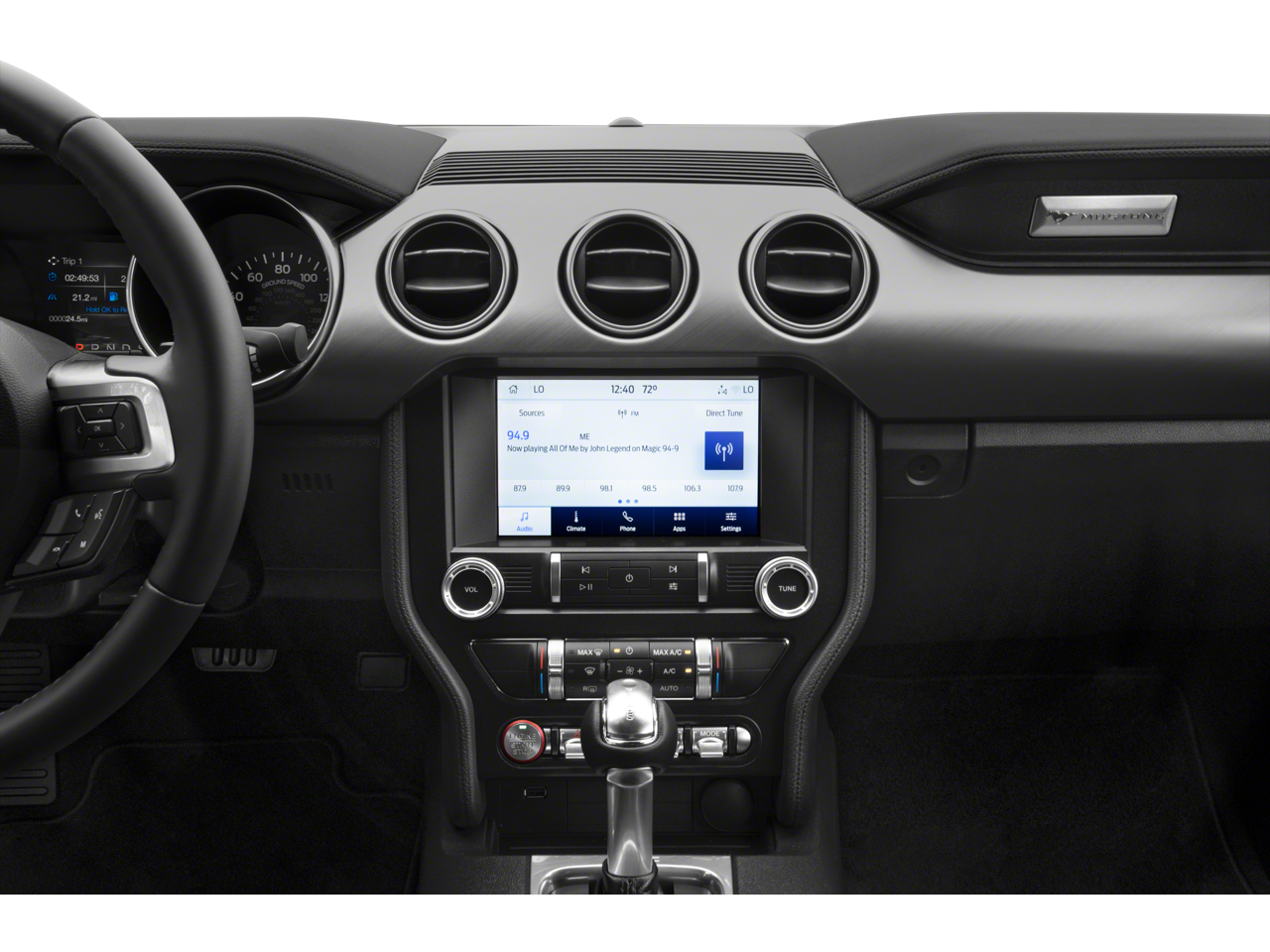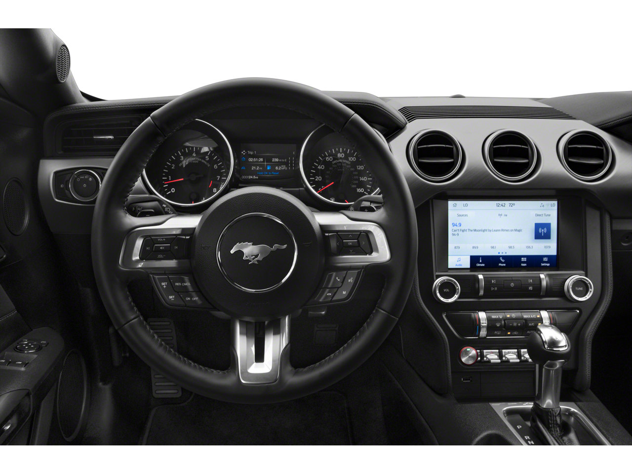 - AM/FM radio: SiriusXM, SiriusXM Radio, Power driver seat, Remote keyless entry, Steering wheel mounted audio controls, Emergency communication system: 911 Assist, Brake assist, Electronic Stability Control, Exterior Parking Camera Rear, Rear Parking Sensors, Active Anti-Theft System, Panic alarm, Security system, Black Grille, Black GT, 5.0 & Pony Badges, Black Mirror Caps, Black Rear Spoiler, Heated door mirrors, Painted Black Roof, Power door mirrors, Garage door transmitter, Illuminated entry, Telescoping steering wheel, Tilt steering wheel, Climate Controlled Heated/Cooled Front Seats, Heated front seats, Ventilated front seats, Wheel Locking Kit, Wheels: 19 x 8.5 Ebony Black-Painted Aluminum