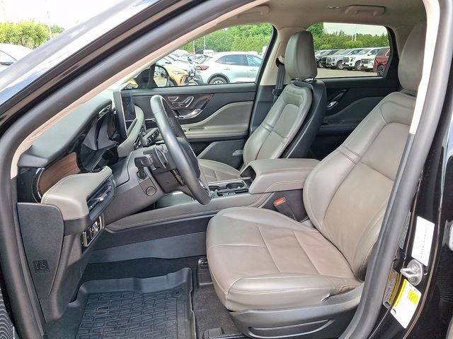 This Vehicle Includes the Following Options: Equipment Group 201A (60/40 EasyFold Rear Seat w/Power Seatback Release, Frameless Auto Dimming Rearview Mirror, Hands-Free Liftgate, Heated Sideview Mirrors, Heated Steering Wheel, Heated/Ventilated Driver & Front Passenger Seats, Phone As A Key (PAAK), Power Tilt/Telescoping Steering Column w/Memory, Rain Sensing Wipers, Universal Garage Door Opener, Windshield Wiper De-Icer, and Wireless Charging Pad), Jet Appearance Package (Body-Color Exterior Elements, Pillar Black Exterior Elements, and Wheels: 20 Black Aluminum), 10 Speakers, 19 Bright Machined Aluminum Wheels, 3.81 Axle Ratio, 360-Degree Camera, 4-Wheel Disc Brakes, ABS brakes, Air Conditioning, Alloy wheels, AM/FM radio: SiriusXM, Auto High-beam Headlights, Auto-dimming Rear-View mirror, Automatic temperature control, Brake assist, Bumpers: body-color, Compass, Delay-off headlights, Driver door bin, Driver vanity mirror, Dual front impact airbags, Dual front side impact airbags, Electronic Stability Control, Emergency communication system: SYNC 4 911 Assist, Four wheel independent suspension, Front anti-roll bar, Front Bucket Seats, Front Center Armrest, Front dual zone A/C, Front reading lights, Front/Side/Rear Parking Sensors, Fully automatic headlights, Heated door mirrors, Heated front seats, Illuminated entry, Knee airbag, Leather steering wheel, Lincoln Premium Audio System Subwoofer Delete, Low tire pressure warning, Memory seat, Navigation system: Connected Navigation (3-year trial), Occupant sensing airbag, Outside temperature display, Overhead airbag, Overhead console, Panic alarm, Passenger door bin, Passenger vanity mirror, Power door mirrors, Power driver seat, Power Liftgate, Power passenger seat, Power steering, Power windows, Premium Leather Heated Comfort Seats, Radio data system, Radio: Lincoln Premium Audio System w/MP3, Rear anti-roll bar, Rear Parking Sensors, Rear reading lights, Rear seat center armrest, Rear window defroster, Rear window wiper, Remote keyless entry, Reverse Brake Assist, Roof rack: rails only, Security system, SiriusXM Radio, Speed control, Speed-sensing steering, Speed-Sensitive Wipers, Split folding rear seat, Spoiler, Steering wheel mounted A/C controls, Steering wheel mounted audio controls, SYNC 4 Communications & Entertainment System, Tachometer, Telescoping steering wheel, Tilt steering wheel, Traction control, Trip computer, and Variably intermittent wipers.