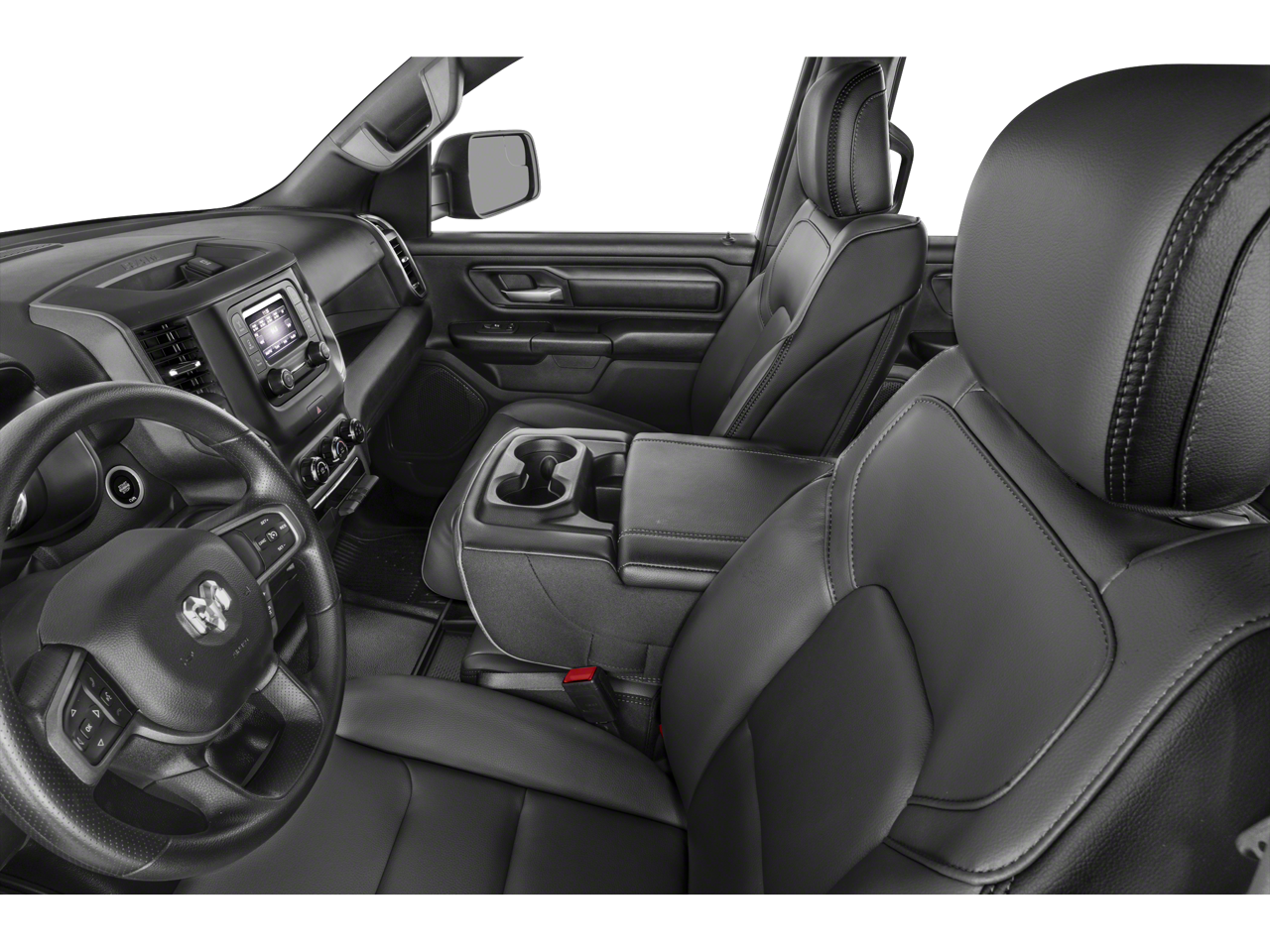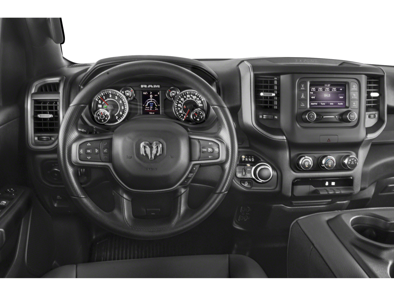 THIS VEHICLE INCLUDES THE FOLLOWING FEATURES AND OPTIONS: Quick Order Package 23A Tradesman, Tradesman Level 1 Equipment Group (2nd Row In Floor Storage Bins, 3 Rear Seat Head Restraints, 4 Way Front Headrests, 40/20/40 Split Bench Seat, Carpet Floor Covering, Cloth 40/20/40 Bench Seat, Front & Rear Floor Mats, Front Center Seat Cushion Storage, Manual Adjust 4-Way Driver Seat, Manual Adjust 4-Way Front Passenger Seat, Rear Folding Seat, Rear Power Sliding Window, and SiriusXM Satellite Radio), Warlock Package (4G LTE Wi-Fi Hot Spot, 8.4 Touchscreen Display, Apple CarPlay, Black Exterior Truck Badging, Bluetooth® Handsfree Phone & Audio, Cluster 7.0 TFT Color Display, Connectivity - US/Canada, E-Locker Rear Axle, For Details, Visit DriveUconnect.com, For More Info, Call 800-643-2112, Front Fog Lamps, Front Performance Tuned Shock Absorbers, Global Telematics Box Module (TBM), Google Android Auto, GPS Antenna Input, Grille Black Surround Black Mesh, Integrated Center Stack Radio, MOPAR Front & Rear Rubber Floor Mats, Radio: Uconnect 5 W w/8.4 Display, Raised Ride Height, RAM Grille Badge - Black, Rear Performance Tuned Shock Absorbers, Selec-Speed (TM) Control, SiriusXM Radio Service, Tow Hooks, USB Host Flip, Warlock Decal, and Wheels: 18 x 8.0 Black Painted Aluminum), 3.21 Rear Axle Ratio, 4-Wheel Disc Brakes, 48V Belt Starter Generator, 6 Speakers, ABS brakes, Air Conditioning, AM/FM radio, Black Exterior Mirrors, Brake assist, Class IV Receiver Hitch, Compass, Delay-off headlights, Driver door bin, Dual front impact airbags, Dual front side impact airbags, Electronic Stability Control, Emergency communication system: SiriusXM Guardian, Exterior Mirrors w/Heating Element, Front anti-roll bar, Front Center Armrest, Front reading lights, Front wheel independent suspension, Fully automatic headlights, Heated door mirrors, Heavy Duty Vinyl 40/20/40 Split Bench Seat, Illuminated entry, Low tire pressure warning, Occupant sensing airbag, Outside temperature display, Overhead airbag, Overhead console, Panic alarm, ParkView Rear Back-Up Camera, Passenger door bin, Passenger vanity mirror, Power door mirrors, Power steering, Power windows, Radio data system, Radio: Uconnect 3 w/5 Display, RAM Grille Badge - Chrome, Rear anti-roll bar, Rear step bumper, Remote keyless entry, Speed control, Tachometer, Telescoping steering wheel, Tilt steering wheel, Traction control, Variably intermittent wipers, Voltmeter, and Wheels: 18 x 7.5 Steel Painted.