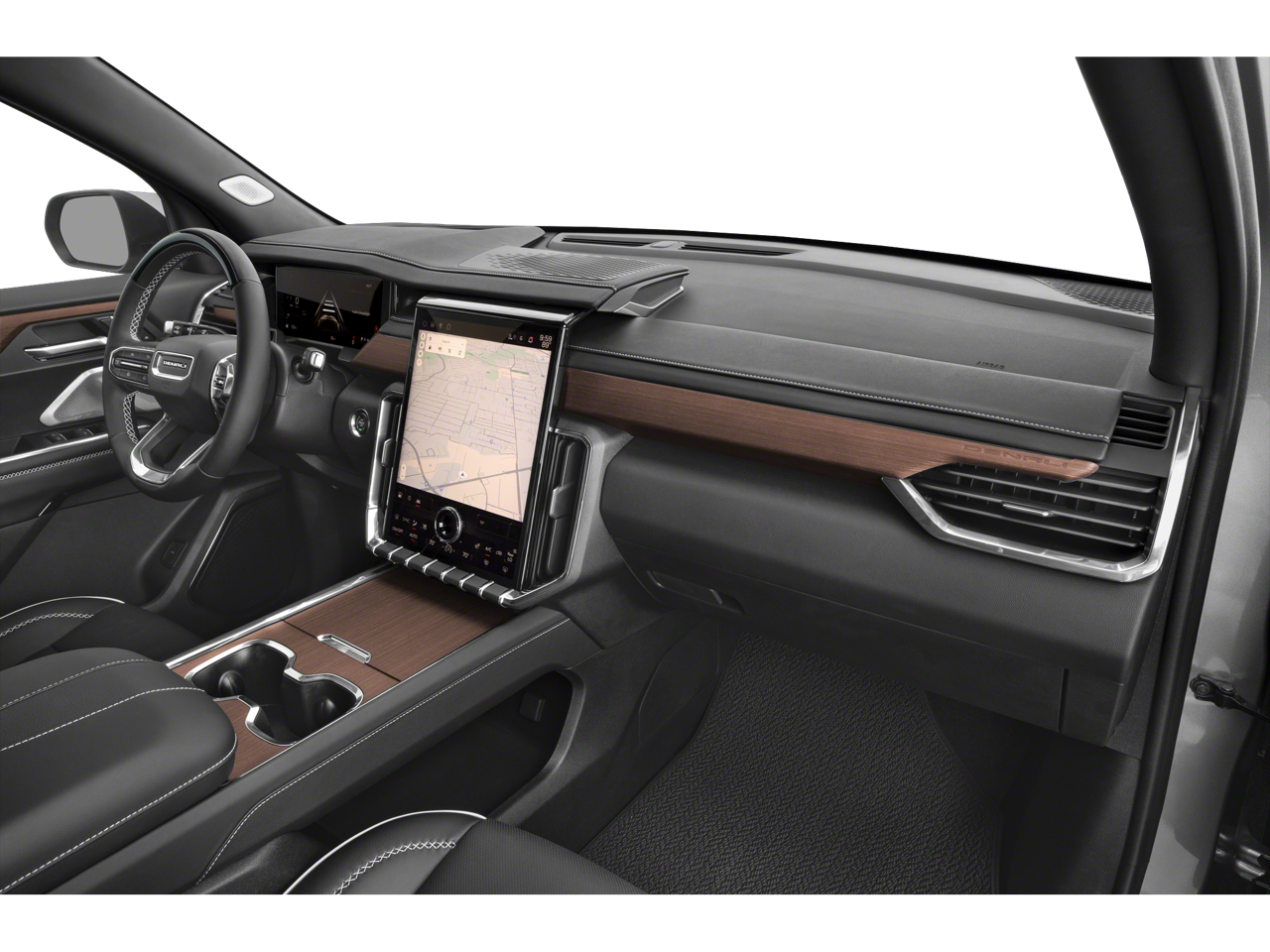 Step inside and be captivated by the Acadia Denali's luxurious cabin, where genuine wood accents and premium leather-appointed seating create an ambiance of refined sophistication. The Bose performance audio system and 15 premium GMC Infotainment System will immerse you in a world of entertainment, while the Heads-Up Display and Super Cruise technology redefine the driving experience.