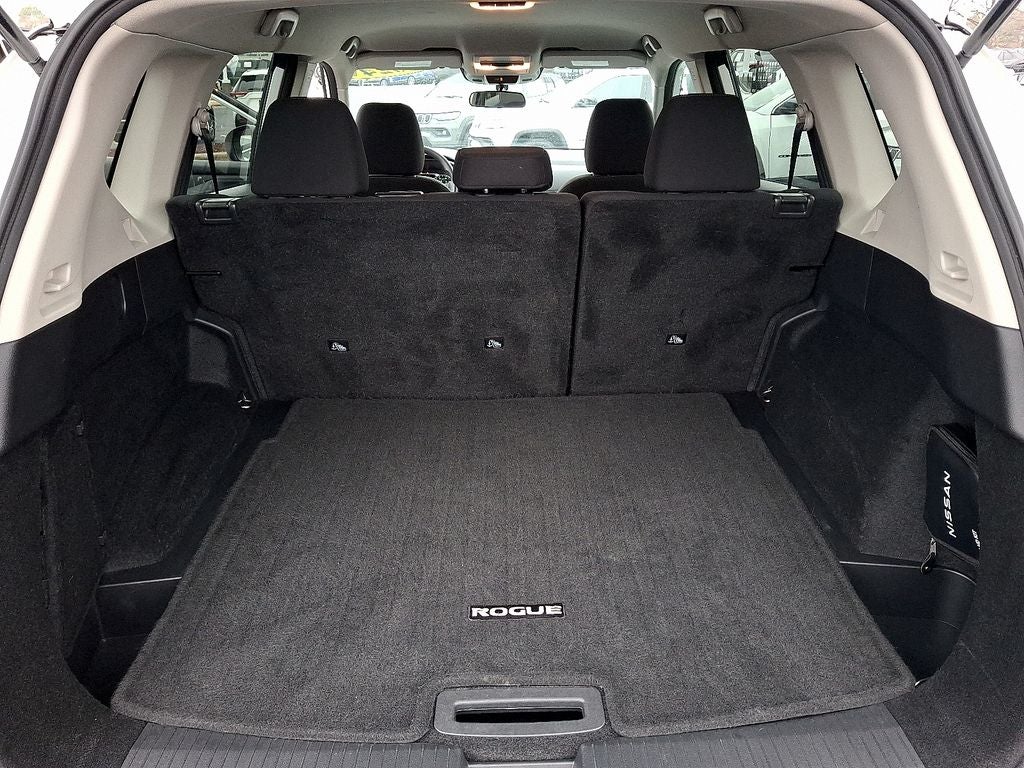 THIS VEHICLE INCLUDES THE FOLLOWING FEATURES AND OPTIONS: AWD, 17 Aluminum Alloy Wheels, 4 Speakers, 4-Wheel Disc Brakes, 5.676 Axle Ratio, ABS brakes, Air Conditioning, Alloy wheels, AM/FM radio: SiriusXM, Auto High-beam Headlights, Blind Spot Warning, Brake assist, Bumpers: body-color, Cloth Seat Trim, Delay-off headlights, Driver door bin, Driver vanity mirror, Dual front impact airbags, Dual front side impact airbags, Electronic Stability Control, First Aid Kit, Floor Mats w/1-Piece Cargo Area Protector, Four wheel independent suspension, Front anti-roll bar, Front Bucket Seats, Front Center Armrest, Front reading lights, Fully automatic headlights, Illuminated entry, Knee airbag, Low tire pressure warning, NissanConnect featuring Apple CarPlay and Android Auto, Occupant sensing airbag, Outside temperature display, Overhead airbag, Overhead console, Panic alarm, Passenger door bin, Passenger vanity mirror, Power door mirrors, Power steering, Power windows, Radio data system, Radio: AM/FM NissanConnect, Rear anti-roll bar, Rear Parking Sensors, Rear seat center armrest, Rear side impact airbag, Rear window defroster, Rear window wiper, Remote keyless entry, Speed control, Speed-Sensitive Wipers, Split folding rear seat, Spoiler, Steering wheel mounted audio controls, Tachometer, Telescoping steering wheel, Tilt steering wheel, Traction control, Trip computer, and Variably intermittent wipers. 28/35 City/Highway MPG