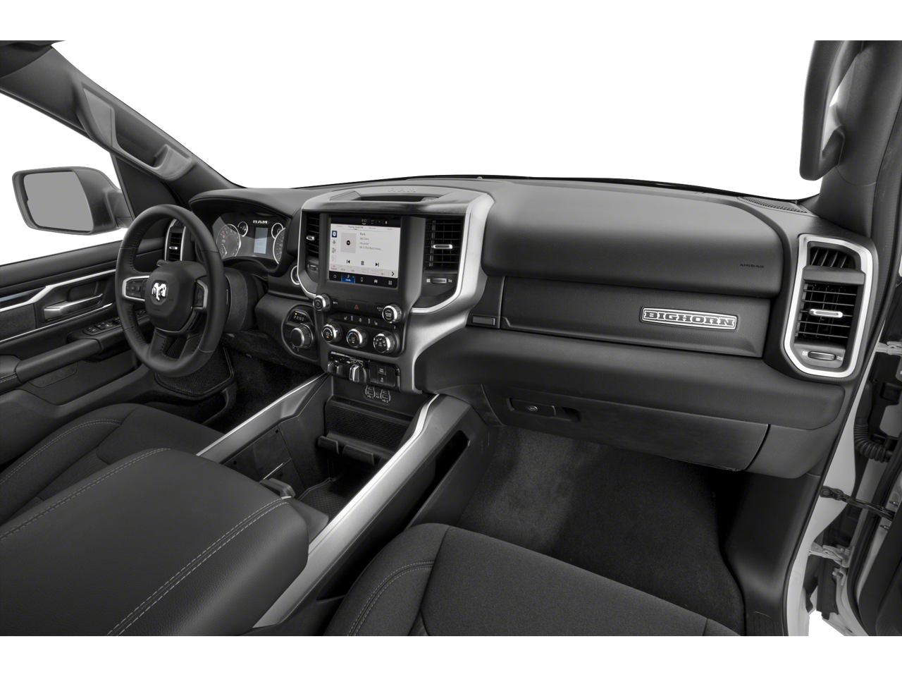 THIS VEHICLE INCLUDES THE FOLLOWING FEATURES AND OPTIONS: Big Horn Level 1 Equipment Group (2nd Row In Floor Storage Bins, 4G LTE Wi-Fi Hot Spot, Apple CarPlay, Auto-Dimming Exterior Driver Mirror, Auto-Dimming Rear-View Mirror, Black Premium Power Mirrors, Bluetooth® Handsfree Phone & Audio, Class IV Receiver Hitch, Connectivity - US/Canada, Convex Wide-Angle Exterior Mirror Insert, Electric Shift-On-Demand Transfer Case, Exterior Mirrors Courtesy Lamps, Exterior Mirrors w/Heating Element, Exterior Mirrors w/Supplemental Signals, For Details, Visit DriveUconnect.com, For More Info, Call 800-643-2112, Front Fog Lamps, Global Telematics Box Module (TBM), Glove Box Lamp, Google Android Auto, Heated Front Seats, Heated Steering Wheel, Passenger Sun Visor w/Illuminated Mirror, Power-Folding Mirrors, Radio: Uconnect 5 W w/8.4 Display, Rear Dome w/On/Off Switch Lamp, Rear Power Sliding Window, Rear Window Defroster, SiriusXM Radio Service, SiriusXM Satellite Radio, and USB Host Flip), Quick Order Package 23Z Big Horn (Big Horn Badge), Quick Order Package 27Z Big Horn, Trailer Tow Group (Black Trailer Tow Power Mirrors, Trailer Brake Control, Trailer Light Check, Trailer Reverse Steering Control, and Trailer Tire Pressure Monitoring System), 3 Rear Seat Head Restraints, 3.21 Rear Axle Ratio, 33 Gallon Fuel Tank, 4 Way Front Headrests, 4-Wheel Disc Brakes, 48V Belt Starter Generator, 6 Speakers, ABS brakes, Air Conditioning, Alloy wheels, AM/FM radio, Brake assist, Bumpers: chrome, Cloth Bench Seat, Compass, Delay-off headlights, Driver door bin, Dual front impact airbags, Dual front side impact airbags, Electronic Stability Control, Emergency communication system: RAM Connect, Front anti-roll bar, Front Center Armrest w/Storage, Front License Plate Bracket, Front reading lights, Front Seat Back Map Pockets, Front wheel independent suspension, Fully automatic headlights, Heated door mirrors, Illuminated entry, Integrated Voice Command w/Bluetooth®, Leather steering wheel, Low tire pressure warning, Occupant sensing airbag, Outside temperature display, Overhead airbag, Overhead console, Panic alarm, ParkView Rear Back-Up Camera, Passenger door bin, Passenger vanity mirror, Power door mirrors, Power steering, Power windows, Radio data system, Radio: Uconnect 3 w/5 Display, RAM Grille Badge - Chrome, Rear 60/40 Folding Seat, Rear anti-roll bar, Rear seat center armrest, Rear step bumper, Remote keyless entry, Remote Start System, Speed control, Split folding rear seat, Steering wheel mounted audio controls, Tachometer, Telescoping steering wheel, Tilt steering wheel, Traction control, Trip computer, Variably intermittent wipers, Voltmeter, and Wheels: 18 x 8 Cast-Aluminum Painted.