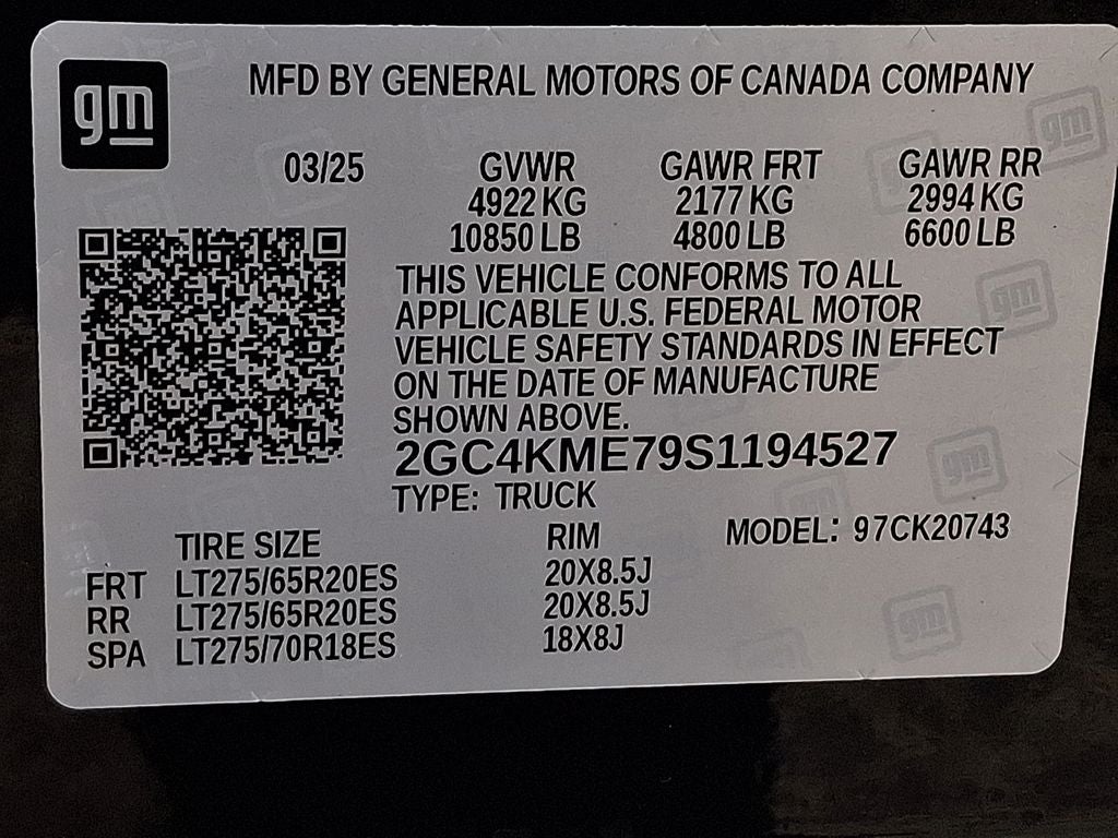 - Tires, LT275/65R20 all-terrain, blackwall