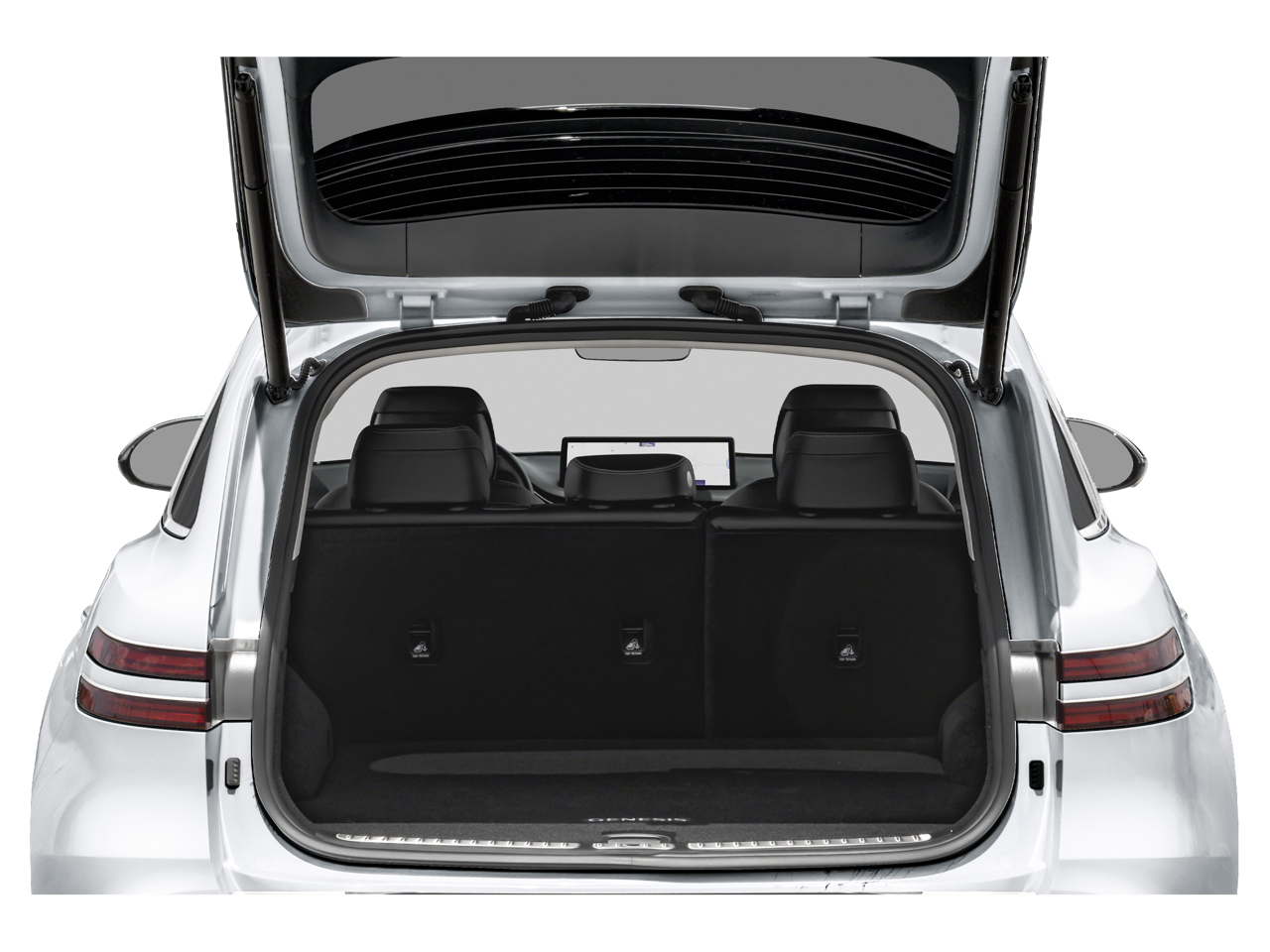 THIS VEHICLE INCLUDES THE FOLLOWING FEATURES AND OPTIONS: 4-Wheel Disc Brakes, 9 Speakers, ABS brakes, Air Conditioning, Alloy wheels, AM/FM radio: SiriusXM, Android Auto & Apple CarPlay, Anti-whiplash front head restraints, Auto High-beam Headlights, Auto-dimming Rear-View mirror, Automatic temperature control, Brake assist, Bumpers: body-color, Delay-off headlights, Driver door bin, Driver vanity mirror, Dual front impact airbags, Dual front side impact airbags, Electronic Stability Control, Emergency communication system: Genesis Connected Services, Exterior Parking Camera Rear, Four wheel independent suspension, Front anti-roll bar, Front Bucket Seats, Front Center Armrest w/Storage, Front dual zone A/C, Front reading lights, Fully automatic headlights, Garage door transmitter: HomeLink, Heated door mirrors, Heated Front Bucket Seats, Heated front seats, Illuminated entry, Knee airbag, Leather steering wheel, Leatherette Seating Surfaces, Low tire pressure warning, Navigation System, Occupant sensing airbag, Outside temperature display, Overhead airbag, Overhead console, Panic alarm, Passenger door bin, Passenger vanity mirror, Power door mirrors, Power driver seat, Power Liftgate, Power passenger seat, Power steering, Power windows, Radio: 14.5 Navigation System w/AM/FM/HD Radio, Rain sensing wipers, Rear anti-roll bar, Rear Parking Sensors, Rear reading lights, Rear seat center armrest, Rear window defroster, Rear window wiper, Remote keyless entry, Security system, Speed control, Speed-sensing steering, Speed-Sensitive Wipers, Split folding rear seat, Spoiler, Steering wheel mounted audio controls, Tachometer, Telescoping steering wheel, Traction control, Trip computer, Turn signal indicator mirrors, Variably intermittent wipers, and Wheels: 19 Dark Hyper Silver Alloy.