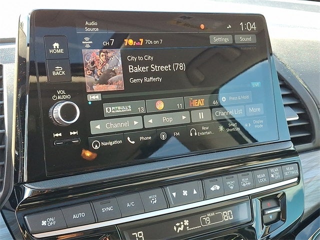 - Radio: 500-Watt AM/FM/HD Premium Audio System -inc: 11 speakers including subwoofer, 9" color touchscreen display, 7" TFT Meter, multi-zone audio, Bluetooth® HandsFreeLink, Bluetooth® streaming audio, HondaLink, HondaLink subscription services, Speed-Sensitive Volume Compensation (SVC), Radio Data System (RDS), wireless Apple CarPlay compatibility, wireless Android Auto compatibility, Wi-Fi Hotspot capability, 2.5-amp USB smartphone/audio interface, CabinTalk in-car PA system, advanced rear entertainment system w/12.8" high-resolution screen, HDMI interface w/USB-A, headphone jack (3rd row), Honda Satellite-Linked Navigation System w/voice recognition and Honda HD digital traffic, CabinWatch rear seat monitor, illuminated steering wheel-mounted controls and fin-type roof-mounted antenna, All SiriusXM services require a subscription, sold separately by SiriusXM after the trial period, If you decide to continue service, the plan you choose will automatically renew at the then-current rates, Fees and taxes apply, See the SiriusXM customer agreement and privacy policy at www.siriusxm.com for full terms and how to cancel, which includes calling 1-866-635-2349, Available in the 48 contiguous U.S, and D.C, Some services and features are subject to device capabilities and location restrictions, All fees, content and features are subject to change, SiriusXM, Pandora and all related logos are trademarks of Sirius XM Radio Inc, and its respective subsidiaries