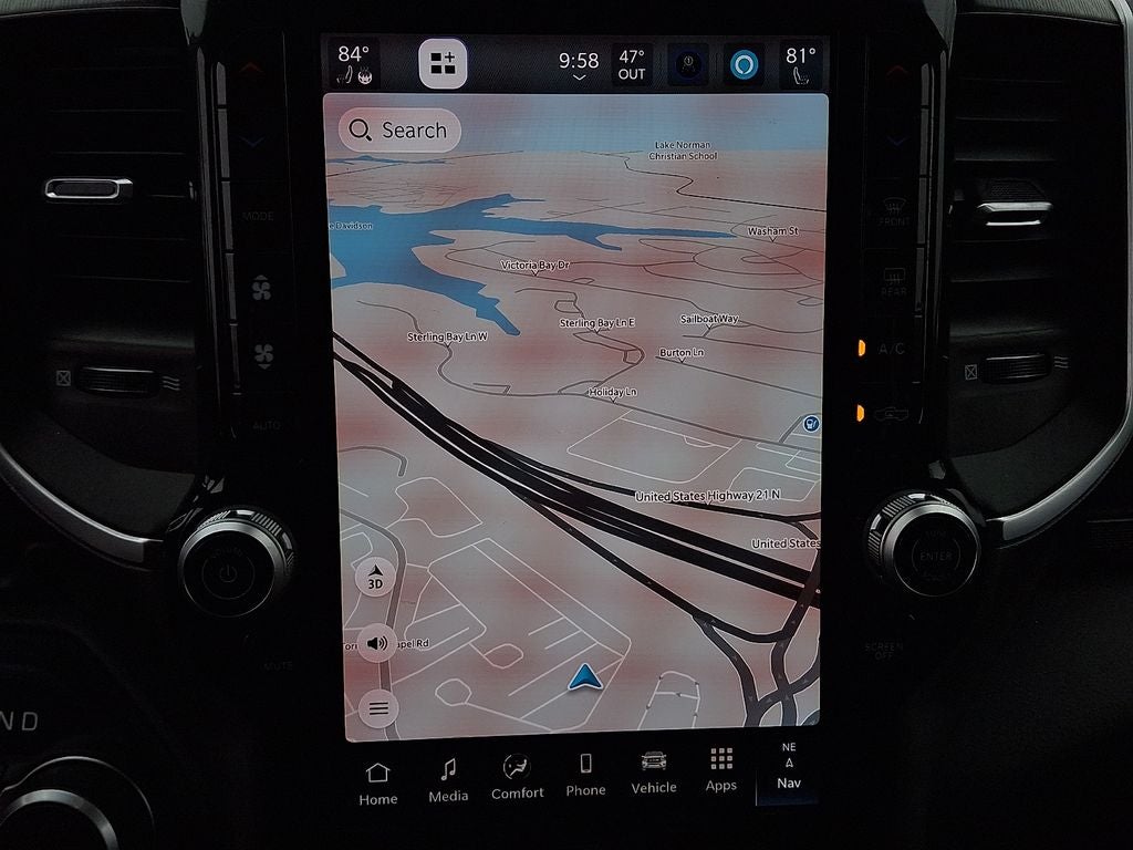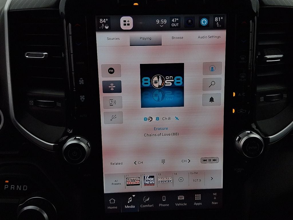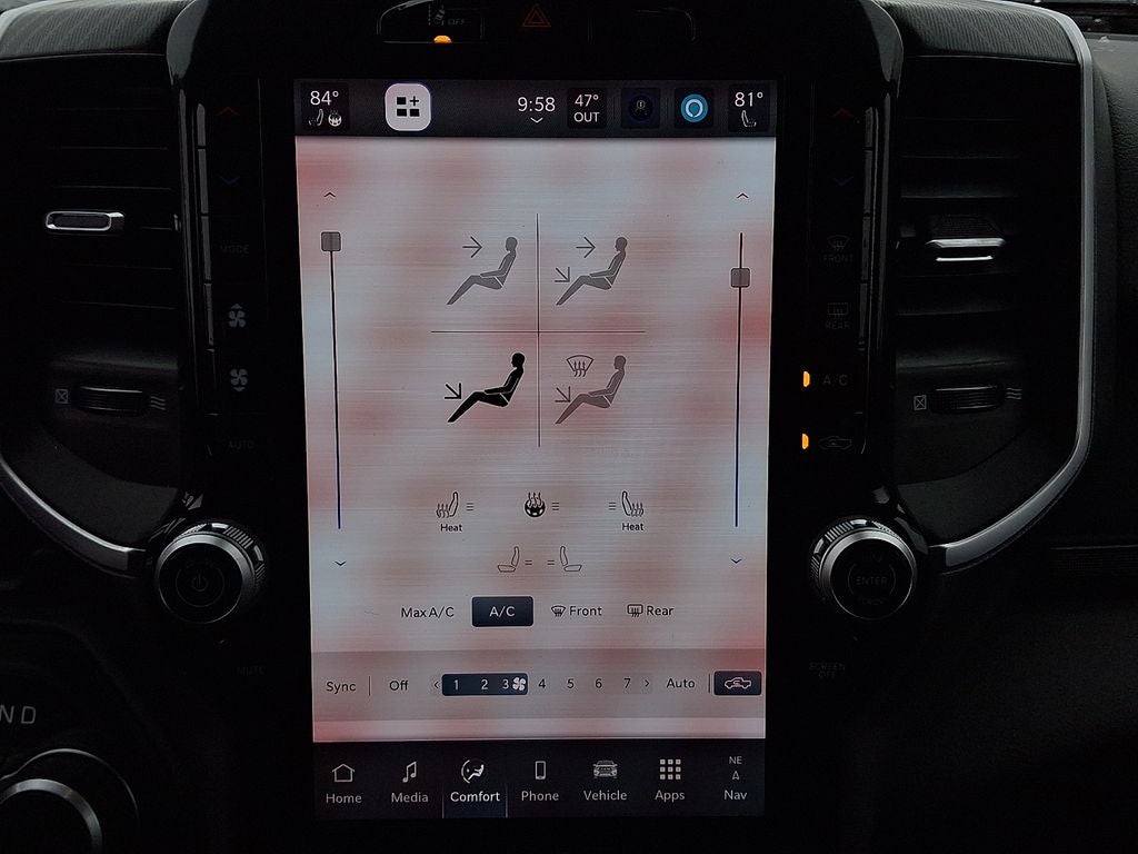 THIS VEHICLE INCLUDES THE FOLLOWING FEATURES AND OPTIONS: Bed Utility Group (Exterior 115V AC Outlet, MOPAR 4 Adjustable Cargo Tie-Down Hooks, MOPAR Spray In Bedliner, and Pick-Up Box Lighting), Big Horn Level 2 Equipment Group (115V Auxiliary Power Outlet, 115V Auxiliary Rear Power Outlet, 12 Touchscreen Display, 2nd Row In Floor Storage Bins, 400W Inverter, 4G LTE Wi-Fi Hot Spot, 9 Amplified Speakers w/Subwoofer, Air Conditioning ATC w/Dual Zone Control, Apple CarPlay, Auto Power-Folding Mirrors, Auto-Dimming Exterior Driver Mirror, Auto-Dimming Rear-View Mirror, Black Exterior Mirrors, Black Premium Power Mirrors, Cluster 7.0 TFT Color Display, Configurable Drive Mode, Connected Travel & Traffic Services, Connectivity - US/Canada, Convex Wide-Angle Exterior Mirror Insert, Exterior Mirrors Courtesy Lamps, Exterior Mirrors w/Heating Element, Exterior Mirrors w/Supplemental Signals, Glove Box Lamp, Google Android Auto, GPS Antenna Input, GPS Navigation, HD Radio, Heated Front Seats, Heated Steering Wheel, Integrated Voice Command w/Bluetooth®, Leather Wrapped Steering Wheel, LED Dome Lamp w/On/Off Switch, LED Footwell Lighting, Media Hub w/2 Charge Only USBs, Overhead LED Lamps, Power 2-Way Driver Lumbar Adjust, Power Adjust 8-Way Driver Seat, Power Adjustable Pedals, Premium Overhead Console, Radio: Uconnect 5 Nav w/12.0 Display, Rear Power Sliding Window, Rear Window Defroster, Remote Tailgate Release, Security Alarm, SiriusXM w/360L, Steering Wheel Mounted Audio Controls, Sun Visors w/Illuminated Vanity Mirrors, Universal Garage Door Opener, and USB Host Flip), Quick Order Package 23Z Big Horn, 3 Rear Seat Head Restraints, 3.21 Rear Axle Ratio, 4 Way Front Headrests, 4-Wheel Disc Brakes, 6 Speakers, ABS brakes, Air Conditioning, Alloy wheels, AM/FM radio, Apple CarPlay/Android Auto, Auto High-beam Headlights, Brake assist, Bumpers: chrome, Cloth Bench Seat, Compass, Delay-off headlights, Driver door bin, Dual front impact airbags, Dual front side impact airbags, Electronic Stability Control, Exterior Parking Camera Rear, Front anti-roll bar, Front Center Armrest w/Storage, Front fog lights, Front reading lights, Front Seat Back Map Pockets, Front wheel independent suspension, Fully automatic headlights, Heated door mirrors, Illuminated entry, Low tire pressure warning, Manual Adjust 4-Way Front Passenger Seat, Manual Folding Exterior Mirrors, Manufacturer's Statement of Origin, Occupant sensing airbag, Outside temperature display, Overhead airbag, Overhead console, Panic alarm, Passenger door bin, Passenger vanity mirror, Power door mirrors, Power steering, Power windows, Radio data system, Radio: Uconnect 5 W w/8.4 Display, RAM Grille Badge - Chrome, Rear 60/40 Folding Seat, Rear anti-roll bar, Rear Center Armrest, Rear seat center armrest, Rear step bumper, Remote keyless entry, Speed control, Split folding rear seat, Supplier Part Tracking (J-1), Tachometer, Telescoping steering wheel, Tilt steering wheel, Traction control, Trip computer, Variably intermittent wipers, Voltmeter, and Wheels: 18 x 8 Cast-Aluminum Painted. Odometer is 4861 miles below market average!