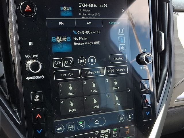 - Radio: Subaru 11.6" Multimedia Plus System -inc: valet mode, integrated center information display, AM/FM stereo HD Radio, multi-touch gesture high resolution display screen, voice activated controls, Bluetooth® audio streaming and hands-free phone connectivity w/SMS text messaging connectivity (refer to subaru.com for cell phone compatibility), iPod control capability, SiriusXM w/360L (4 months free trial/subscription required after), SiriusXM Travel Link (3 years free trial/subscription required after), smartphone integration for Android Auto and Apple CarPlay w/full screen view and wireless connection, USB and Over The Air (OTA) audio system update, steering wheel control switches for audio and Bluetooth®, 6 speakers, 3.5mm auxiliary input jack and roof mounted audio and satellite antenna