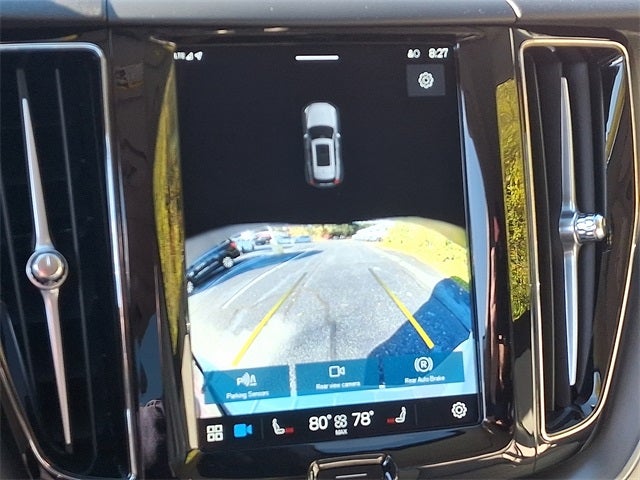 THIS VEHICLE INCLUDES THE FOLLOWING FEATURES AND OPTIONS: AWD, 10 Speakers, 4-Wheel Disc Brakes, ABS brakes, Air Conditioning, Alloy wheels, AM/FM radio: SiriusXM, Anti-whiplash front head restraints, Apple CarPlay, Auto High-beam Headlights, Auto-dimming door mirrors, Auto-dimming Rear-View mirror, Automatic temperature control, Brake assist, Bumpers: body-color, Delay-off headlights, Driver door bin, Driver vanity mirror, Dual front impact airbags, Dual front side impact airbags, Electronic Stability Control, Emergency communication system: Volvo Cars App w/4 Year Subscription, Exterior Parking Camera Rear, Four wheel independent suspension, Front anti-roll bar, Front Bucket Seats, Front Center Armrest, Front dual zone A/C, Front fog lights, Front reading lights, Fully automatic headlights, Heated door mirrors, Heated Front Bucket Seats, Heated front seats, Illuminated entry, Knee airbag, Leather Shift Knob, Leatherette Upholstery, Low tire pressure warning, Memory seat, Occupant sensing airbag, Outside temperature display, Overhead airbag, Panic alarm, Passenger door bin, Passenger vanity mirror, Power door mirrors, Power driver seat, Power Liftgate, Power moonroof, Power passenger seat, Power steering, Power windows, Radio data system, Radio: High Performance Sound System, Rain sensing wipers, Rear anti-roll bar, Rear fog lights, Rear reading lights, Rear seat center armrest, Rear window defroster, Rear window wiper, Remote keyless entry, Security system, Speed control, Split folding rear seat, Spoiler, Steering wheel mounted audio controls, Tachometer, Telescoping steering wheel, Tilt steering wheel, Traction control, Trip computer, Turn signal indicator mirrors, Variably intermittent wipers, and Wheels: 18 5-Double Spoke Black Diamond Cut Alloy.